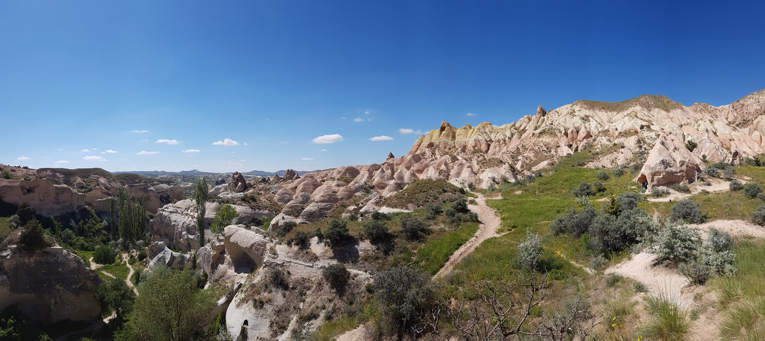 Au réveil, le ballet merveilleux des montgolfières comme ils disent dans les guides… C’est chouette !La vallée rose ou rouge…Squat en intérieur, il fait froid, on a acheté une couette !